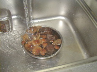 左は椎茸です。 とってもうつくしい(愛) シシタケ、椎茸、クリタケをボールに入れて 熱い湯を3分ほどかけ流してアクだし。 (生椎茸、乾し椎茸だけのときも アク出しは必要です。)